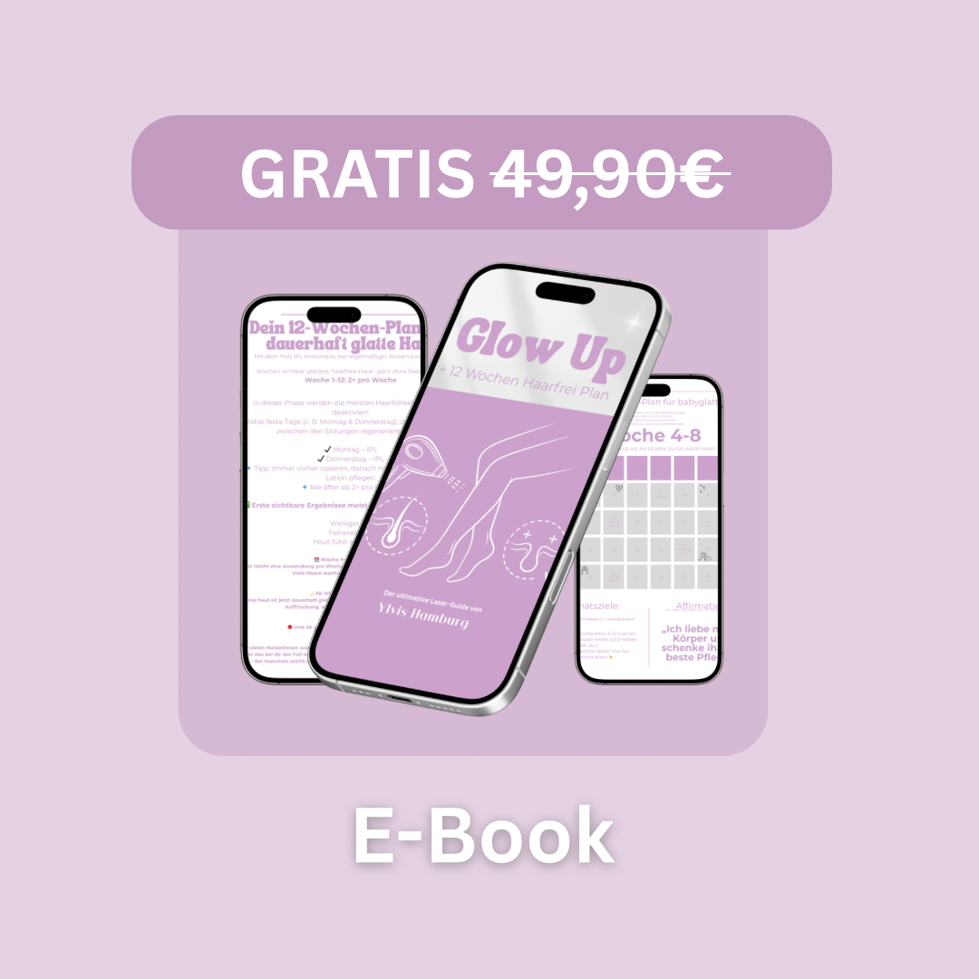 Zu deinem Ylvis IPL Hair Remover erhältst du unser exklusives E-Book – kostenlos. Darin findest du einen klar strukturierten 12-Wochen-Laserplan, Tipps von Experten und viele weitere spannende Infos.